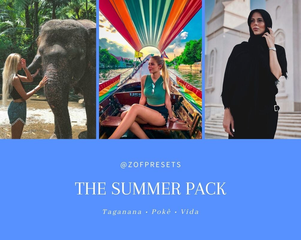 ENG - THE SUMMER PACK combo contains 40 Lightroom presets of the TAGANANA, VIDA AND POKÈ packages.