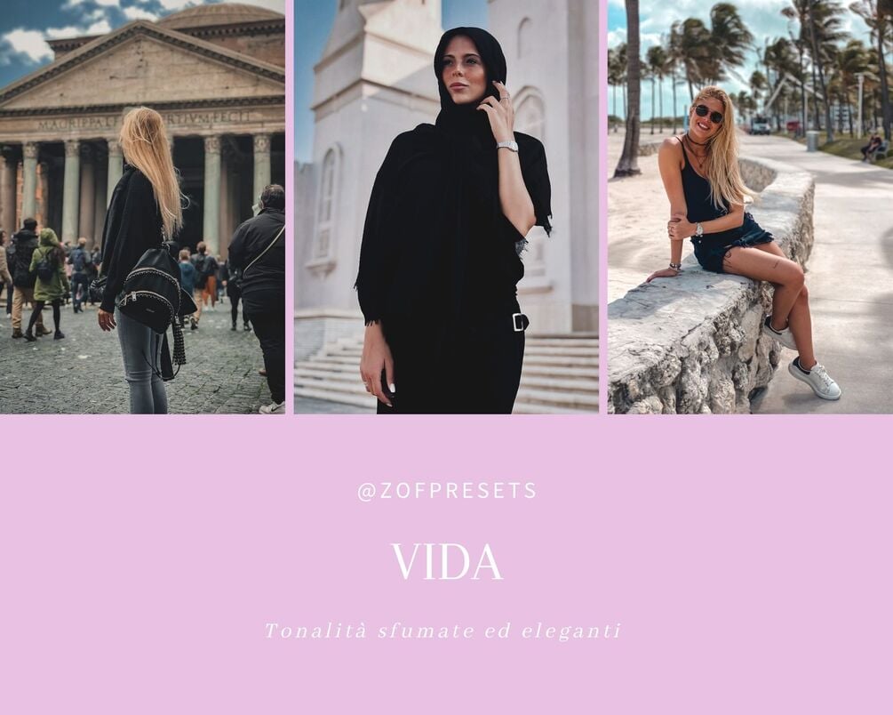 ENG - The VIDA package contains 10 Lightroom presets ideal for giving elegant and soft tones to your shots.